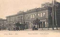 1891 у Києві з'явився перший постійний театр, антреприза режисера і актора Миколи Соловцова.Акторський склад його трупи і надалі став базою Київського державного російського драматичного театру. Перші вистави трупа Соловцова показувала у приміщенні, де працює сьогодні театр ім. Івана Франко.